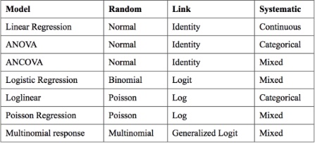 The systematic statement describes our model for the parameters of the assumed probability distribution. We characterize the systematic components by creating a vector of explanatory variables that are linear in the predictors…these are just our normal betas setup in regression. These are the factors that affect the conditional mean of \(Y_i, \mu\).
